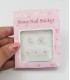 نگین ناخن را با موچین و یا قلم داتینگ برداشته و سطح زیرین آن را به برق ناخن یا لاک آغشته کنید و بر روی سطح ناخن بچسبانید.