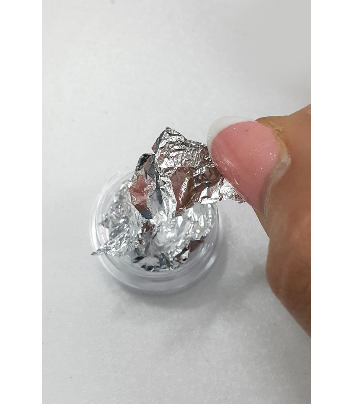 - لاک پایه را بزنید و چسب فویل و یا تاپ کت را بر روی ناخن زده و فویل را بر روی آن قرار دهید. با اپلیکاتور بر روی فویل فشار دهید و سپس فویل را از روی ناخن جدا کنید. برای ماندگاری بیشتر از یک لایه تاپ کت یا برق ناخن استفاده کنید. (به یاد بسپارید که خشک کننده