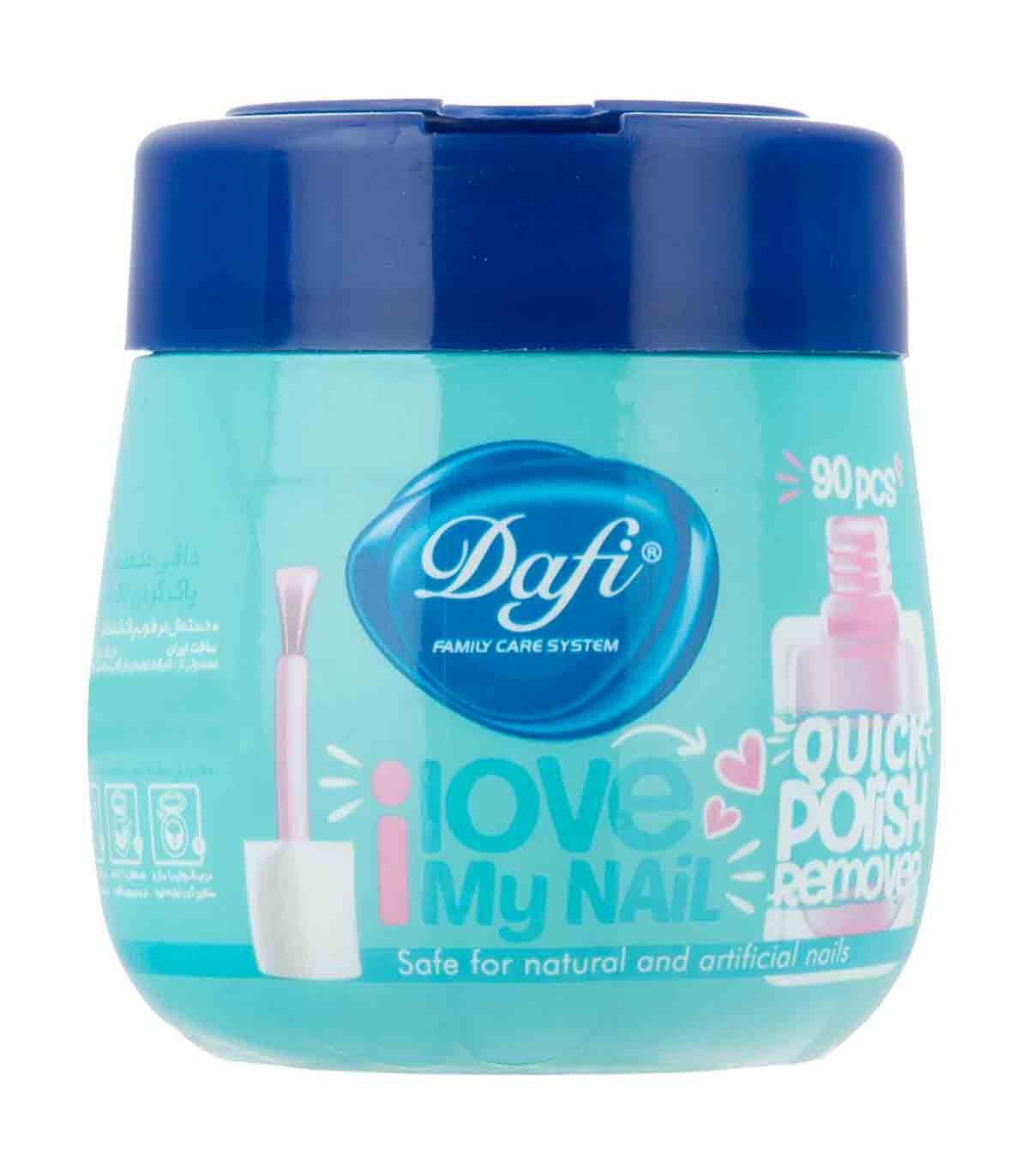 پد لاک پاک کن دافی با اثر پاک کنندگی سریع، جایگزینی مناسب برای استون است و در بسته 45 عددی به بازار عرضه می شود. ابعاد هر یک از پدها 6.5 در 16 سانتی متر است.. این محصول فاقد استون و پارابن و مواد طبیعی از بین برنده لاک ناخن است که علاوه بر آنکه برای ناخن و پوست اطراف آن مضر نخواهد بود میتوان برای ناخنهای مصنوعی نیز استفاده کرد.